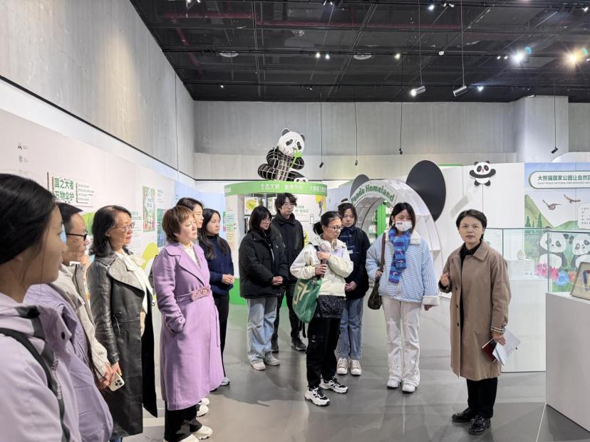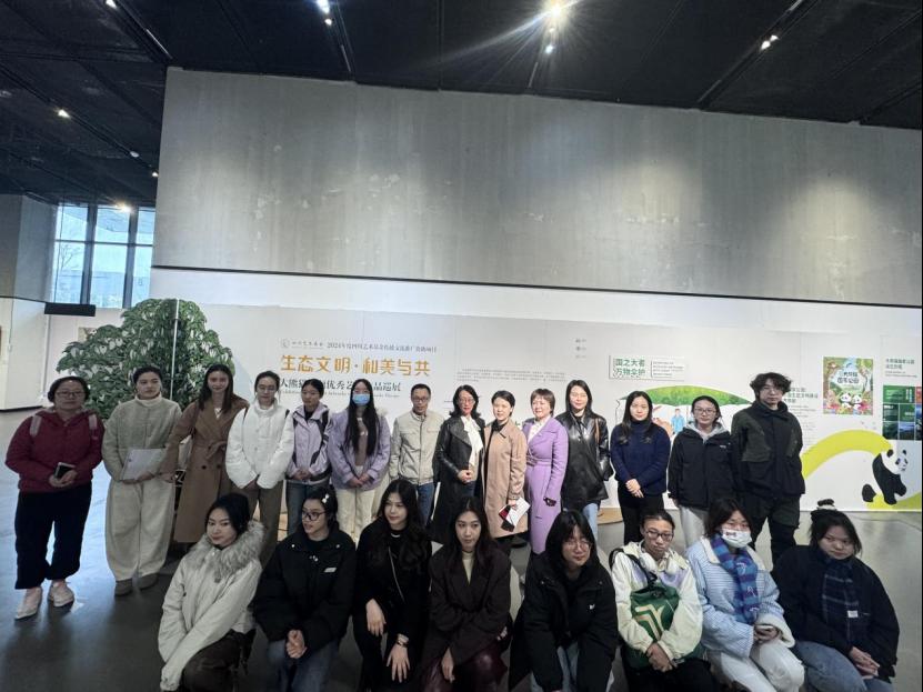 参会师生们同时参观了东盟美术馆内的 2024 四川艺术基金传播交流推广资助项目“生态文明·和美与共--大熊猫主题优秀艺术作品巡展”。这些作品以大熊猫为主题,生动地展现了大自然的魅力和生态保护的重要性。精美的绘画、摄影作品让大家深刻感受到了艺术家们对大熊猫的热爱以及对生态文明的关注。