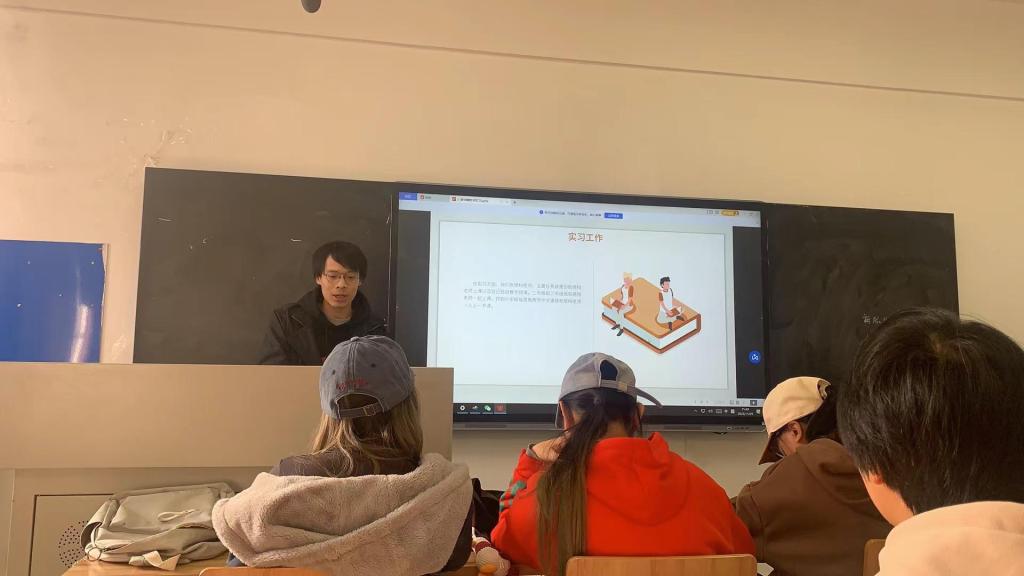 第三位分享经验的是陈鑫同学,她从赴泰实习的日程作息安排、师生情等角度分享了自己的实习经历。她讲述了泰国那边的实习学校的老师学生都很友善,教学任务不重,自己的时间比较灵活。在泰国的教书经历不仅开拓了自己的视野,对人生有了新的认知,而且这段经历对自己以后的工作也有了很多帮助。