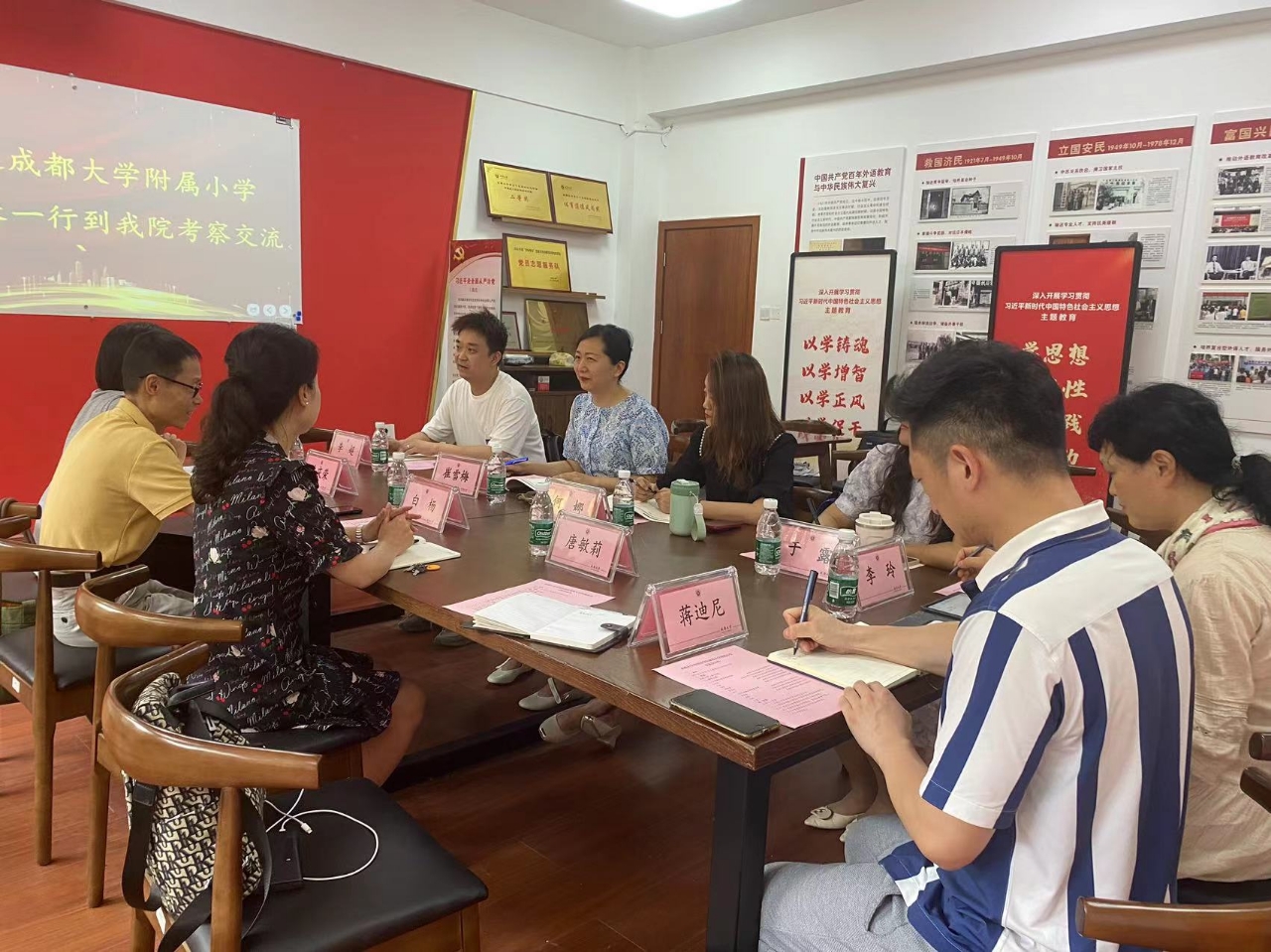 成大附小办公室主任李超、教师发展中心主任何娜、英语教研主任于露,外院英语系主任杨蓓、泰语系主任唐敏莉、英语系教师李玲、商务英语系蒋迪尼博士参加此次交流。