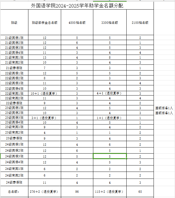 外国语九游官方网站2024-2025学年度国家助学金名额拟分配方案如下,公示时间为2024年10月10日。全院师生如有异议,请于2024年10月10日17:30前向学工办2103胡老师反映。 联系电话:84616303