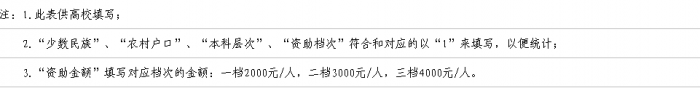 3、 请直接按照当时各班的排序从上往下按照名额的分配填写助学金表格(已上传至班长QQ群共享—附件《2017-2018学年度本专科国家助学金受助学生名册》),请大家仔细阅读该表下方的填写说明,如下如所示: