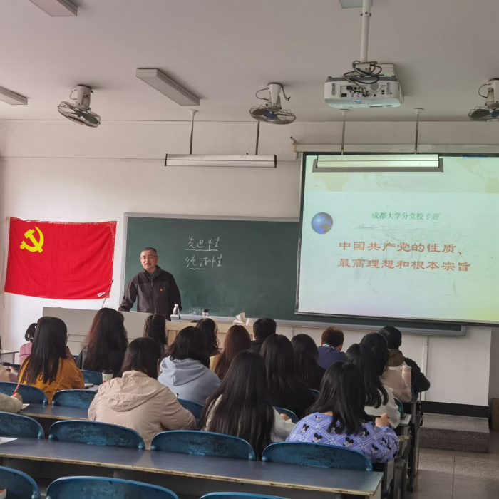 党课开始,彭时平老师首先向入党积极分子朗读入党誓词。接着,他从三个方面介绍了中国共产党:一.中国共产党的性质:为同学们强调了两个先锋队;二.中国共产党的最高理想;三.中国共产党的宗旨:全心全意为人民服务。他强调,中国共产党是先进性和纯洁性的统一。最后,他引用“天行健,君子以自强不息”来激励同学们,希望同学们能早日入党。