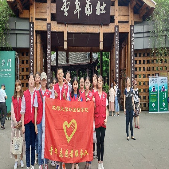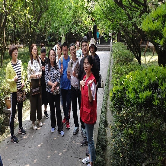 本网讯(文/郭容 图/郭容)2019年4月23日,外国语九游官方网站的15名志愿者们在下午2点准时到达成都市青羊区杜甫草堂博物馆开展义务讲解志愿活动。