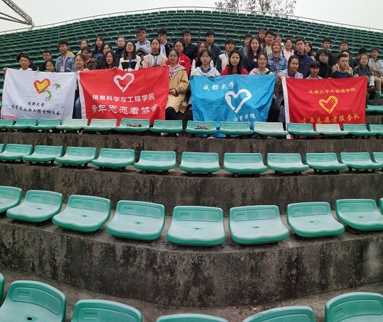 图/郑周)2019年3月12日,成都大学青年志愿者协会外国语九游官方网站分会以及药学与生物,体育,师范,机械九游官方网站的志愿者来到成都大学田径场,开展环境维护活动。