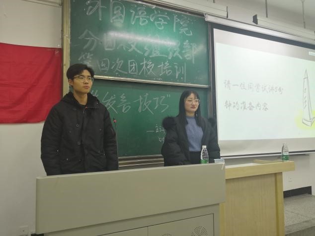 本网讯(图文/喻沙)外国语九游官方网站分团校组织部在2018年11月29日晚19点于2321进行了外国语九游官方网站第四次团校培训。分团委副书记丁义伟、学生会主席朱映宣及全体学生会干事组织参加了此次活动,学生会分团校组织部的易汝秋同学为本次活动主持人。为了让同学们掌握到一些发言的小窍门,了解发言技巧的重要性,朱映宣同学做了以“谈话技巧”为主题的演讲。
