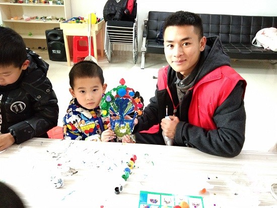 面具是艺术的一种表现形式,不同形状色彩的面具有不同的内涵,传达出不同的情感,以面具为载体可以让孩子们学会表达自己的艺术和情感。在绘制面具的过程中,孩子们全身心投入,即使手上沾满了颜料也挪不开他们专注的目光。大功告成之际,孩子们兴奋地戴上自己画的面具与志愿者们一起拍照。紧接着,刺激的踩气球游戏开始了。孩子们双腿各绑上三只气球开始了激烈的角逐,不一会儿有的小朋友就只剩一只气球了,而仍有六个气球的小朋友镇定自若地露出了自信的微笑。最后一个活动是翻牌游戏,在这项游戏中,孩子们明白了团队合作对提高效率节省时间的重要性。快乐的时光总是短暂的,志愿者在与孩子们合影留念后返校。