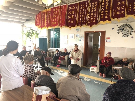 志愿者们12点50分准时从成大校门出发,在下午1点30分到达康疗院。在负责人与工作人员交接后,伴随着和煦的阳光,志愿者们整齐有序地进入康疗院。志愿者们走到老人身边,积极主动地与老人沟通交流,了解老人近期的身体状况,推着他们在院子里散步,感受初冬季节难有的温暖时光。时间来到下午3点,志愿者们开始准备为老人们表演节目,有的志愿者唱歌,有的志愿者跳舞,这些给老人们带来了欢声笑语,有的老人也加入进表演的队列,现场一片其乐融融的景象。欢乐的时光总是短暂,时间来到4点30分,志愿者们和老人们告别之后开始准备回校。