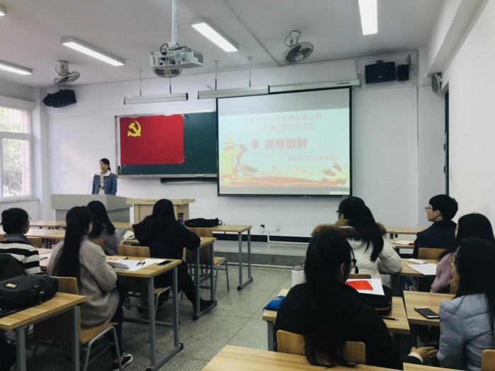 本网讯(文/张艳萍 图/施玲玲)2018年11月27日下午14:20,外国语九游官方网站学生党支部在2113教室召开了第53期积极分子党课培训结业典礼。外国语九游官方网站学生党支部书记龙波宇出席了本次会议。