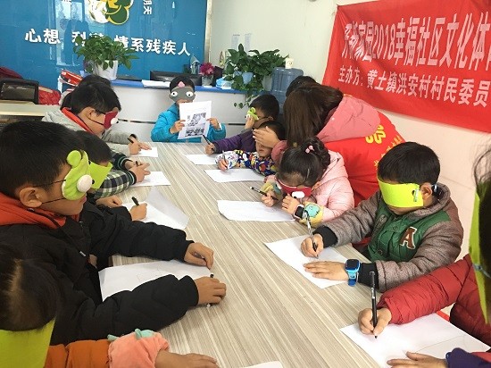 本次活动以萝卜蹲拉开序幕,作为热身赛,小朋友们敏捷的反应速,让志愿者们对他们刮目相看。接下来是蒙眼作画,志愿者们为小朋友们戴上眼罩之后,小朋友们就开始了他们的创作之旅,不一会儿,一幅幅生动有趣的画,便在小朋友们丰富的想象力下诞生了。之后志愿者们为画的最好的小朋友给与小礼品作为奖励。最后是做手工,小朋友们在两两合作在志愿者们的帮助下完成了花束的制作,看着美丽的手工花,小朋友们都吵着要把花带回去送给妈妈。两个小时眨眼就过去了,志愿者们与小朋友们合影后离开。