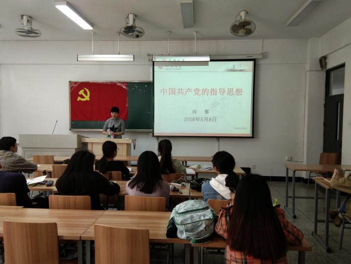 向黎老师主要从党的指导思想表述的回顾与分析、党的指导思想与时俱进的基本经验、怎样对待党的指导思想三个方面来阐述。详细阐述了马克思列宁主义并介绍了马列主义中国化的党的指导思想。