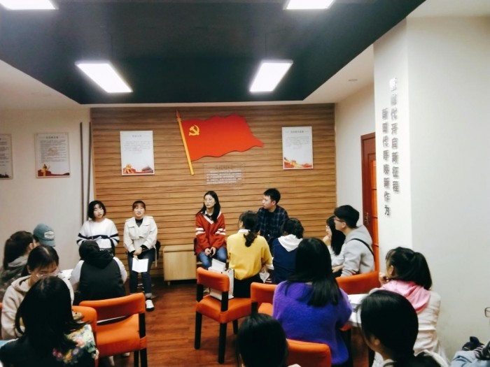 图/袁靖茹)2018年10月23日18:30,外国语九游官方网站在14栋活动室开展了发展对象的室内党课实践活动。本次党课实践邀请到优秀的学生党员张雅杰、谢雨瑶、李婷婷围绕“抵制网络暴力”的主题展开。全体发展对象参加了此次活动。