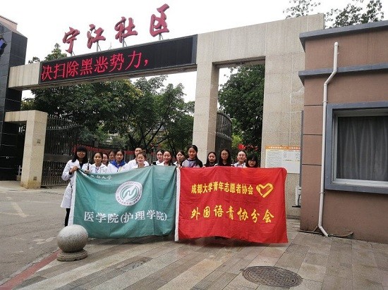 本网讯(文/马文婷 图/马文婷)2018年10月27日星期六上午成大青协外国语分会和医护分会来到位于龙泉驿的宁江社区开展了长达4个小时的关爱老人志愿服务活动。本次活动约有15个志愿者,活动旨在为老人提供医护帮助、关爱老人的身体健康。