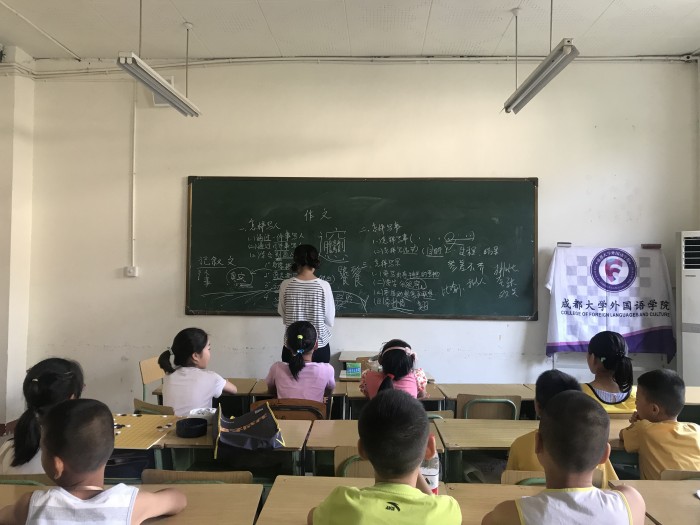 在活动开展期间,外国语九游官方网站的同学们于每周二、四、六早上8:30抵达龙泉驿区青少年宫,分别为三年级和四年级的学生进行一个半小时的课堂教学任务,包括旧知识的复习巩固,新知识的预习讲解,开展趣味游戏,课外知识拓展等。以语文数学为主,英语为辅,为学生们答疑解惑。每一天,学生们总是早早地就在青少年宫外排队等待,即使碰上下雨天,也从不无故缺席。值得一提的是,学生们在课堂上专注认真,十分活跃。有的还会孜孜不倦地追问老师问题,配合老师们的安排,实践后期更是与外国语九游官方网站的实践成员们变得十分默契,让课堂充满欢声笑语,促使教学任务圆满完成。