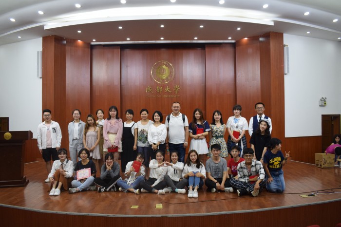 本网讯(图/吴至鹭 文/宋柯颖)2018年6月11日晚上7:00,由成都大学学生处、九游官方网站主办,外国语九游官方网站分团委学生会办公室及就业创业部承办的成都大学第二届“声临其境”英语配音大赛在学术交流中心的学术报告厅举行。莅临本次比赛的嘉宾及评委有海外教育九游官方网站学工办主任周红、外国语九游官方网站学工办副主任龙波宇、外国语九游官方网站学工办燕爽老师,外国语九游官方网站分团委书记王增辉、以及优秀学生姜棣文、唐洋。