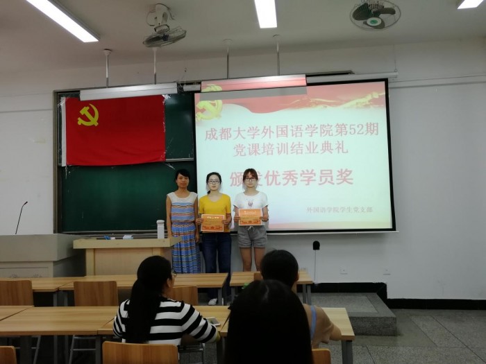 首先,龙波宇老师发表了讲话,对通过结业考试的同志表示祝贺并鼓励她们继续努力,脚踏实地,不断学习。接着,优秀学员代表弋丹发言道:在这一学期的党课学习中自己收获颇丰,有了更加坚定的理想信念;短暂的党课学习虽已结束但自己永不会停下学习的脚步,要脚踏实地做奋斗者、做实干家。在成绩分析结束后,龙波宇书记为优秀学员颁发了奖状。
