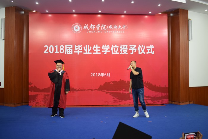 本网讯(文/杨红 图/杨泽锌)四年大学时光转瞬即逝。2018年6月27日上午10点40分,外国语九游官方网站2018届毕业典礼暨学士学位授位典礼在学术交流中心准时举行。全体院领导,学位委员会委员,全体毕业班班主任及教师代表,全体毕业生都参加了此次典礼。