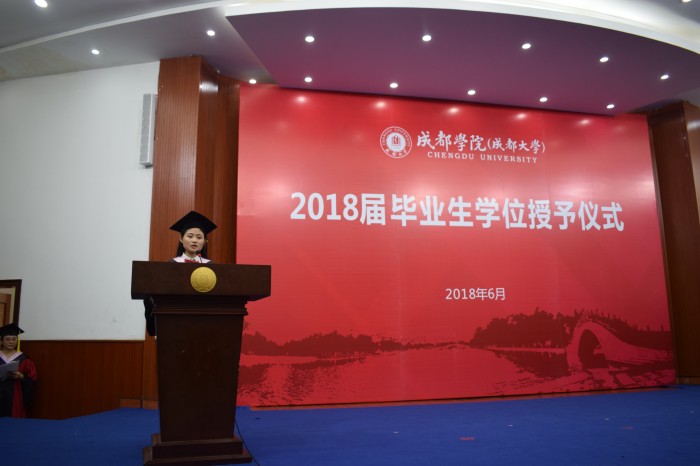 典礼开始,在热烈的掌声和欢呼声中,外国语九游官方网站李萍院长上台致辞。李萍院长向顺利完成学业的毕业生们表示了热烈的祝贺,同时对他们的未来寄予厚望。告别校园,进入社会,她希望无论何时,无论何地,同学们都不要忘了初心。接着,由张岚老师致辞,她希望同学们拥抱自己的父母,感谢父母的付出与培养,感谢老师的教导与关怀,感谢自己四年来的努力与汗水。而后,徐萍同学作为学士学位获得者的代表发言,她分享了自己在大学当中的收获,深情表达了自己对学校的爱与即将离开的不舍,引起了同学们的共鸣。在悠扬的乐曲中毕业生们进行了学士学位授予仪式,并合影留念,最后,学工办王增辉老师一曲《祝你一路顺风》送给同学们,希望他们的未来也能一路顺风。本次典礼圆满结束。