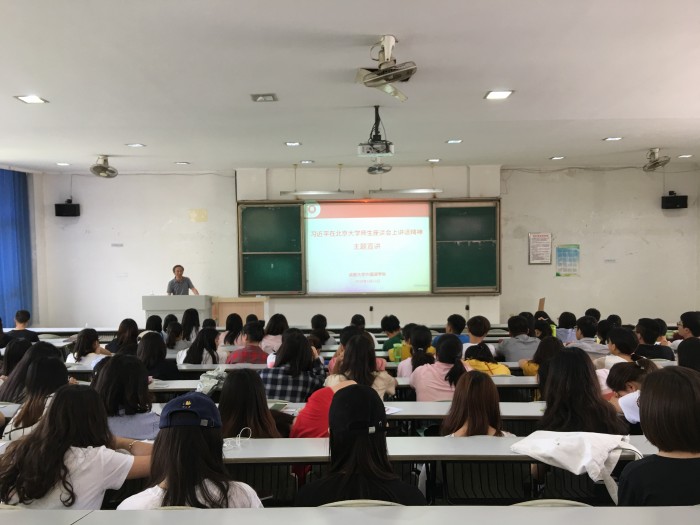 (本网讯 文/罗嵚 ) 为了提高同学们对习近平总书记北师大讲话的认识,5月22日,在4119教室举行以“学习习近平在北师大师生座谈会上的讲话精神”为主题的讲座。出席本次讲座的人员有席原书记、燕爽老师,以及大一、大二的同学们。