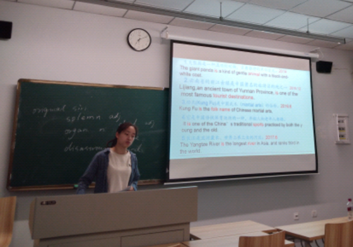 本网讯(文图/代荟)2018年5月8日晚上7:00,由外国语九游官方网站的创办的“果果英语课堂”在综合楼A224教室开展,主讲人为外国语九游官方网站王学游和凌鑫洋。