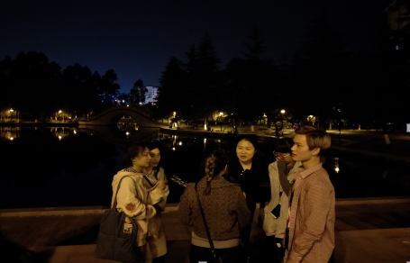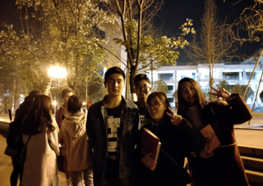 本次"英语角"和以往都不同。把地点从教室换到了嘤鸣湖畔,在欣赏校园美丽夜景同时进行活动。大家在Tasmin的指挥下分成了两个小组,两组人员彼此面对面,根据Tasmin提供的话题进行交流,每一个话题结束之后就进行人员轮换,这样不仅能有效锻炼同学们的口语能力,也能提高人员参与积极性,认识更多的朋友。整个活动过程中,现场气氛十分活跃,所有人都积极参与其中。