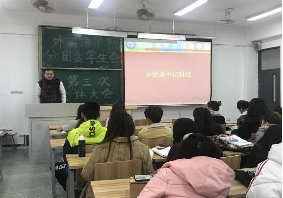 随后分团委书记王增辉老师进行讲话,王老师表示从本次大会中各部门的工作汇报中他感受到了同学们的进步,并且希望各部门能将自己工作的改进方法落到实处,使外国语九游官方网站分团委更好的为同学们服务。最后,王老师也表示,希望分团委学生会的同学们不忘学习的本职,在本学期最后阶段好好复习,祝福同学们能取得满意的成绩。