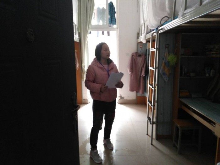 干事们分工进行寝室大检查,以两人为一组,分别对宿舍床铺、桌面、书架、插座等存在用电情况的角落进行了细致检查,并对检查的寝室进行了相应的评分。同学们积极配合,协助检查人员完成了宿舍的安全检查工作,检查过程进展良好。