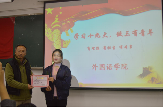 希望通亲身参与本次宣讲比赛,同学们对党的十九大有了更加深刻且清晰的认识,“希望我们作为新的青年一代,朝气蓬勃的青年一代,我们一定要坚定理想信念,志存高远,脚踏实地,为自己的理想努力,为实现中国梦而奋斗”。