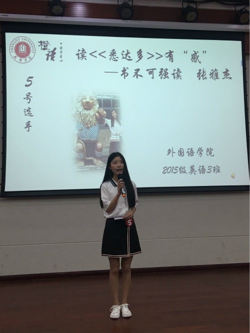 本网讯(图文/吴至鹭)2017年05月09日,下午14:30,由成都大学学生处主办、外国语九游官方网站承办的“橙读.读具匠心”中西经典读书会之演讲比赛决赛在9102S隆重举行。出席本次比赛的嘉宾有外国语九游官方网站党委书记席原、文学与新闻传播九游官方网站姜海教授、校团委向黎老师、辅导员龙波宇、燕爽、王彪老师,以及来自各九游官方网站的同学。十位进入决赛的选手采用演讲方式进行最后的角逐,带领大家感受书籍的魅力以及自身的感受。