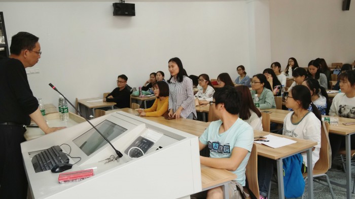在本次讲座中,首先由陆生教授进行了关于泰语语音系统的阐释,其主要内容包括:1.泰语汉语语音文字的基本概念,2.泰语辅音及字母,3.泰语合成辅音字母,4.泰语韵母及韵尾。在讲解过程中,陆教授耐心细致的一一道来,结合现实状况,进行多方面的生动展示,寓教于乐,使同学们所学的知识得到了强化巩固,也充分体会到了泰语学习的乐趣与魅力。随后,活动进行到了学生提问环节,在场的泰语系同学们踊跃参与,纷纷向陆教授援疑质理,提出一些有关泰语日常学习、考研、就业的切实问题,陆老师以一位学识经验丰厚的长者身份专业真诚的回答同学们的提问,他指出在当前中泰经济文化友好交往的国际形势下,泰语专业学生就业前景十分可观,教导同学们怀诚心面对泰语学习,贵在坚持,不可心焦气躁,只要肯下功夫努力提升自我,勇于抓住机遇,便能成就自我。