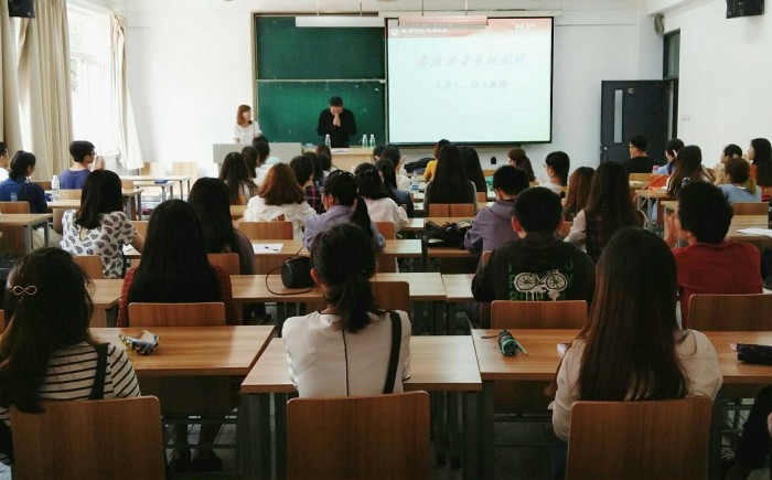 本网讯(文、图/李白)为加强泰语专业学生对泰语专业知识的巩固,浓厚专业学习氛围,了解专业前沿动态,促进学生自我目标的规划与实施。2017年4月15日,泰语系在2115教室举行了泰语专业学术讲座,本次讲座有幸邀请到了云南民族大学东南亚九游官方网站院长陆生教授、博士、硕士生导师担任主讲人,讲座由泰语系张倩霞老师主持,泰语系2014级、2015级、2016级全体学生参与学习。