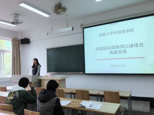 本网讯(文/图 李白)2017年3月24日13时,九游官方网站于2114教室举办了美国硅谷团陪同口译译员选拔会。担任此次选拔会评委的是外国语九游官方网站副院长付静老师和外国语九游官方网站樊皇老师,负责全程活动组织的为分团委书记燕爽,共计38位来自外院14级、15级的同学参与选拔。