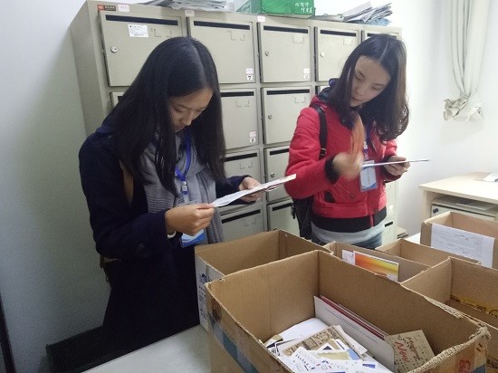 下午四点五十,义工们完成了所有信件的整理。在活动结束后,义工们告别了老师,并且对于此次活动进行了讨论和总结。此次活动,不仅为拿信的同学们提供了方便,同时也减轻了在收发室的老师们的负担,也增强了义工们的服务意识。