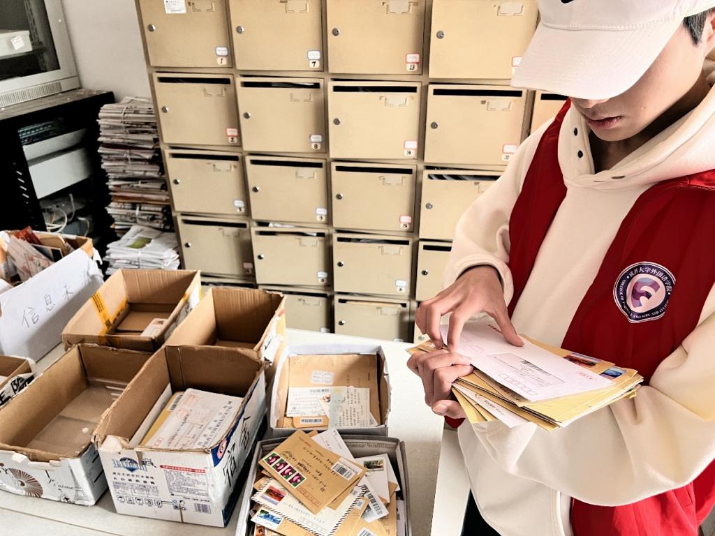 下午14点整,志愿者们准时到达北门收发室。初次体验星星邮差活动的他们显得格外好奇和兴奋,所以整理起来信件也是雷厉风行,一丝不苟。他们时而被来自五湖四海的信件所震惊,时而因真情流露的明信片而感动不已。在高效完成任务的同时,又感受到了人与人之间最真挚的情感,相比志愿者们在此次活动中收获颇丰。只可惜有些信件因为各种原因始终无人认领,这也不禁使人思考:如果像古时那般没有现代通讯科技,没有及时收到信件的人会怎样呢?他们是否会眺望远方,将愁思寄于天地了?幸好如今我们拥有了便利的通讯技术,可以随时随地的联系到对的人。