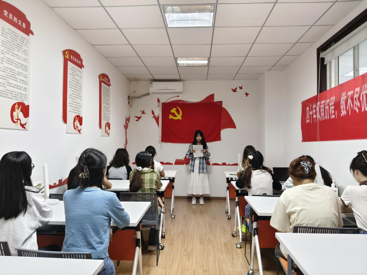 在接下来的学生党员分享中,明灵苓同志就四六级考试各题型提出了较详细的备考方法,并建议同学们结合自身实际情况选择适合自己的备考策略以提高自身应对考试的能力,考前做好充足准备,保持良好心态。杨江霞同志分享到,听力是关键,考前冲刺阶段需要保持一定的练习强度,练习中尤其要注意错题部分,其次,在阅读、翻译和写作方面,可通过反复刷真题、背单词和背写作模板等方式等技巧,在短时间内提升备考水平。周哓媛同志从细节出发,对于四六级不同题型中容易疏忽遗漏的地方,逐一做出相应的应对措施,并列举了一些做题过程中会遇到的问题,生动形象地为同学们展示了四六级考试答题的注意事项。