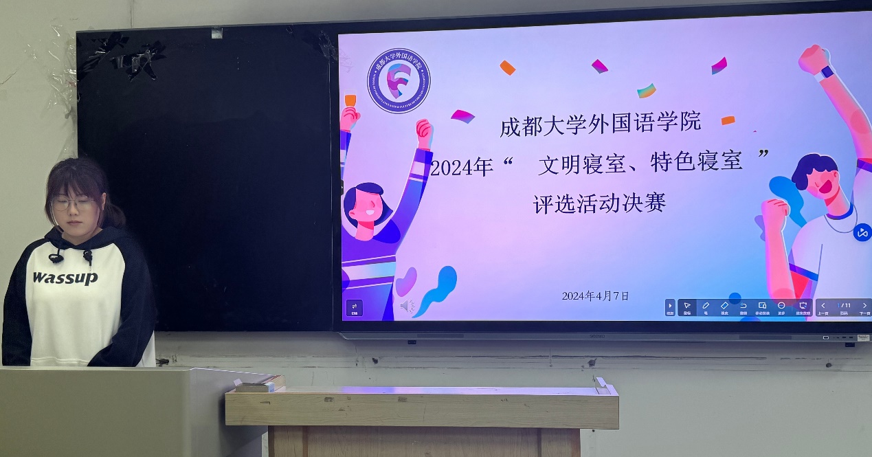 外国语九游官方网站“文明寝室、特色寝室评选活动”圆满举行,获一等奖的611寝室将代表九游官方网站参加学校本年度十佳寝室评选。