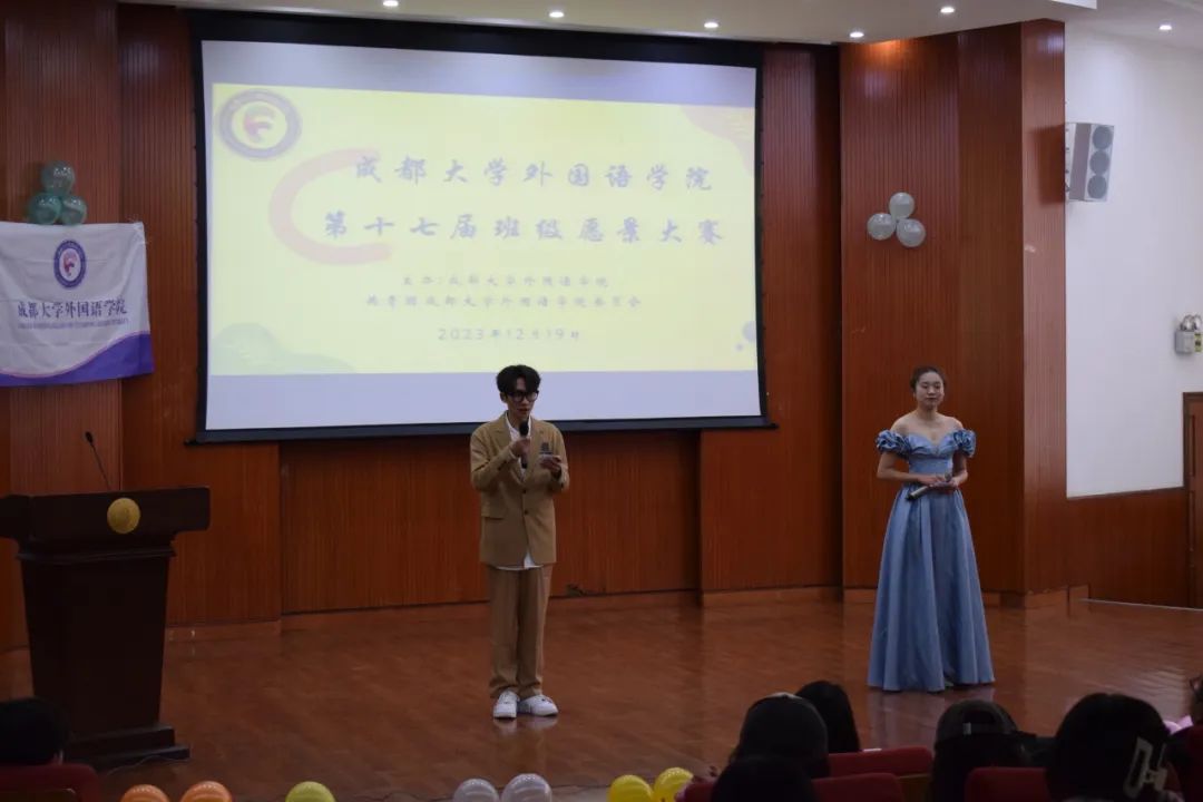 为营造良好的学习氛围,明确新生大学生涯规划,展示班级风采,加强学风建设,12月19日下午,成都大学外国语九游官方网站第十七届班级愿景大赛在学术交流中心报告厅隆重举行。九游官方网站党委书记许庆荣老师、党委副书记张亮老师、学工办主任龙波宇老师,团委书记、辅导员王增辉老师,学工办裴天凤老师,泰语系主任林艺佳老师,泰教王惜美老师应邀出席并担任评委,2023级全体学生参加本次活动。