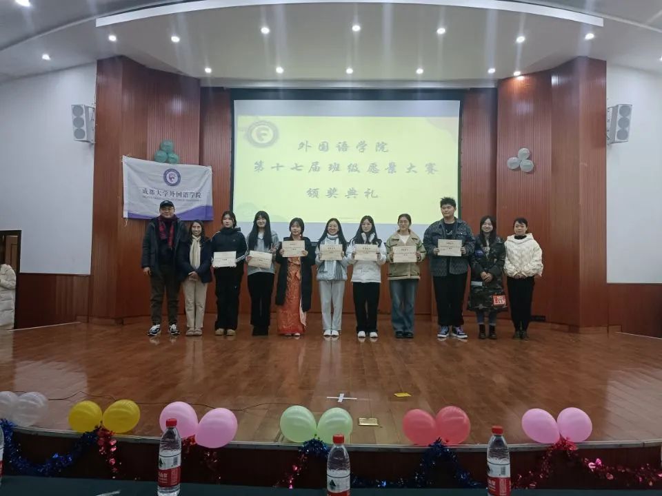 经过激烈的角逐,23级英语三班以89分获得了此次比赛的一等奖;23级商务英语二班和泰语一班获得了二等奖;23级英语一班、二班、四班,商务英语一班获得了三等奖。