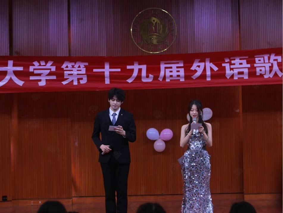 当日晚,学术报告厅内气氛热烈,来自不同专业、不同年级的同学们齐聚一堂,共同见证这场外语与音乐交融的视听盛宴。大赛现场,选手们纷纷登台亮相,用优美的嗓音演绎着一首首经典的外语歌曲。他们或是深情款款地唱出爱情的美好,或是激情澎湃地传达着对梦想的追求,每一位选手都以独特的风格和精彩的表现,赢得了台下观众的阵阵掌声与欢呼声。