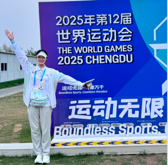 “作为成都世运会青龙湖射箭场馆的竞赛成绩志愿者,我深知自己肩负的责任 —— 确保赛事成绩准确、及时地呈现,是保障比赛公平、顺畅的关键。工作中,我始终保持高度专注,一丝不苟地操控记分屏幕系统,紧盯每一支箭的环数、每一轮的排名变化,确保这些信息能实时、无差错地传递给运动员、教练员与现场观众。同时,我充分发挥外语专业优势,主动与外国技术官员、裁判团队沟通,准确理解指令、及时反馈问题,有效克服语言障碍,保障成绩数据传输与处理流程高效顺畅。面对高强度的赛事节奏,我始终保持冷静细致,最终以零差错的记录、高效的双语沟通,赢得了外方技术团队的认可,也为射箭比赛的圆满成功贡献了自己的一份力量。”