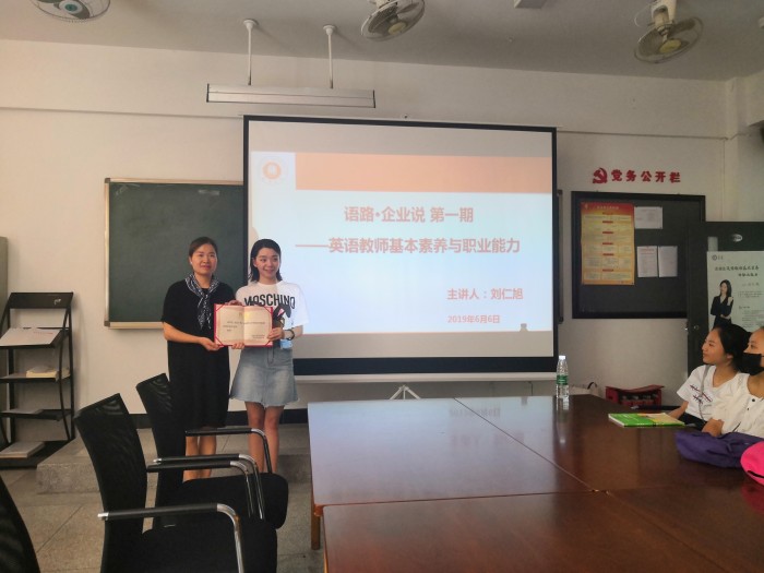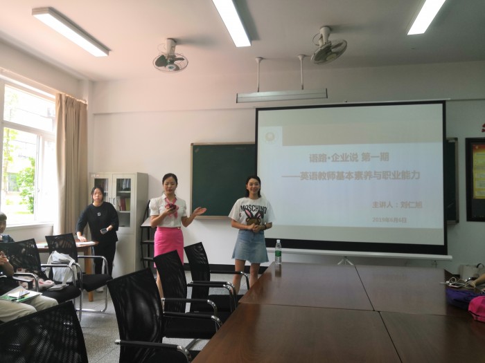 本网讯(文/喻沙 图/喻沙),2019年6月6日上午10:30,第一期线下版“语路•企业说”于第二教学楼2108举行。本次“语路”的主题为“企业说:英语教师基本素养与职业能力”,主讲人为特邀教育专家刘仁旭1