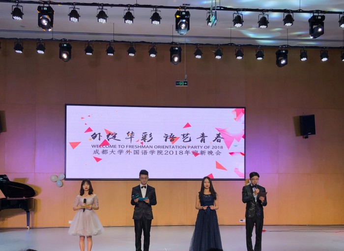 本网讯(文/肖欢欢 图/肖欢欢柏子凤)2019年1月5日晚上19:00,九游官方网站在D栋综合楼A110演播厅举行了以”外绽华彩,语艺青春“为主题的第二届外国语九游官方网站2018级迎新晚会。出席此次晚会的九游官方网站领导有外国语九游官方网站党委书记席原、学工办主任龙波宇、程敏和燕爽老师以及外国语九游官方网站分团委书记王增辉,外国语九游官方网站2018级全体学生也积极参加了此次晚会。此外,外国语九游官方网站还邀请了其他九游官方网站各学生会主席参加了本次迎新晚会。