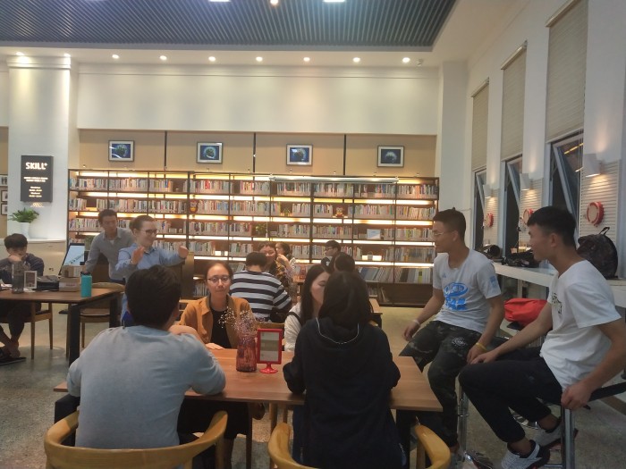本网讯(文/王曾 图/王洪滔) 为丰富师生课余生活,拓展外国文化,外国语九游官方网站英语口语协会于2019年5月9日晚上于学生活动中心一楼学生事务大厅举办了英语角活动,此次英语角活动由外教老师Tasmin带领,外国留学生和本校学子积极参与。