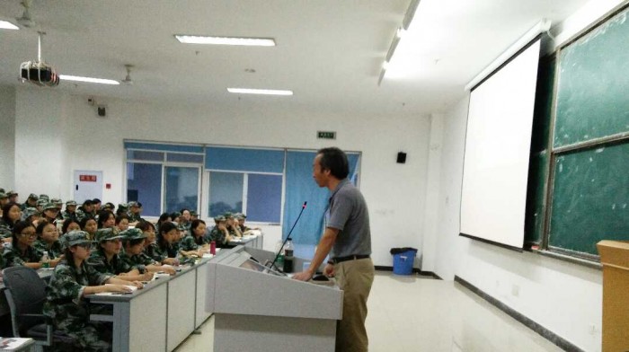 实资料向同学们阐释了当前国际局势,简要分析了我国国防安全发展历程,展示说明我国国防实力不断增强。席书记指出,作为新一代的大学生,强大的新生力量,伟大中国梦的实践者,能够真正学有所成,致力为祖国发展做贡献,积极投身于祖国建设。在场的同学们全神贯注,认真学习,民族自豪感与爱国热情高涨。