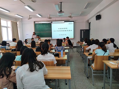 本网讯(文 图/陈意文)为进一步提高同学们的考研热情,使他们明确考研目标,掌握恰当的考研准备方法和技巧。2017年5月12日星期五下午16:00,外国语九游官方网站在2教2117教室举行了2017年考研交流会。我们有幸邀请到外国语九游官方网站本届考研中成绩优异的刘亚如,张师容,汪建兰,万琴,贾冰等同学给大家做了考研经验交流分享。外国语九游官方网站学工办王彪老师和各年级有考研意向的同学们都来参加了此次交流会。