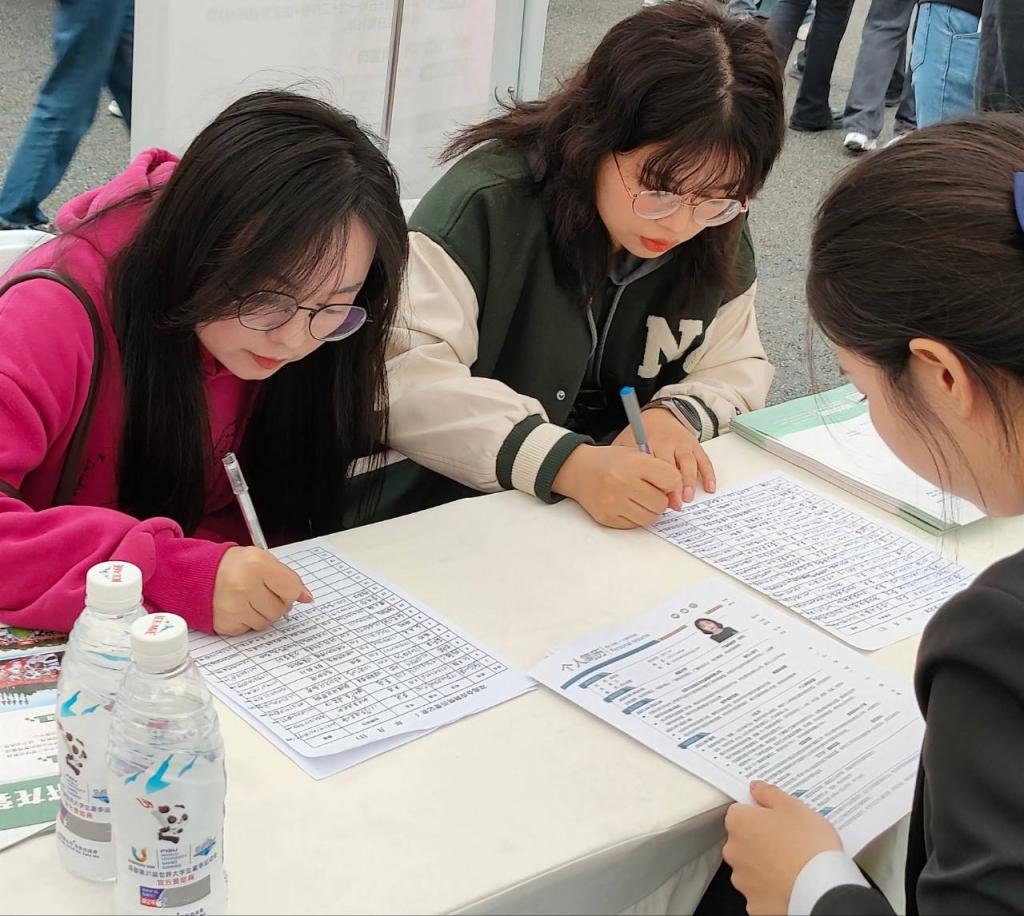 双选会现场气氛热烈,毕业生和用人单位积极互动。用人单位通过发放宣传材料、现场展示以及面对面介绍等形式,向毕业生介绍用工需求和工作待遇,吸引毕业生加入,毕业生们在现场认真聆听相关单位的就职要求,在多方了解企业信息后,结合自身实际,向心仪的单位投递个人简历,并留下个人信息。