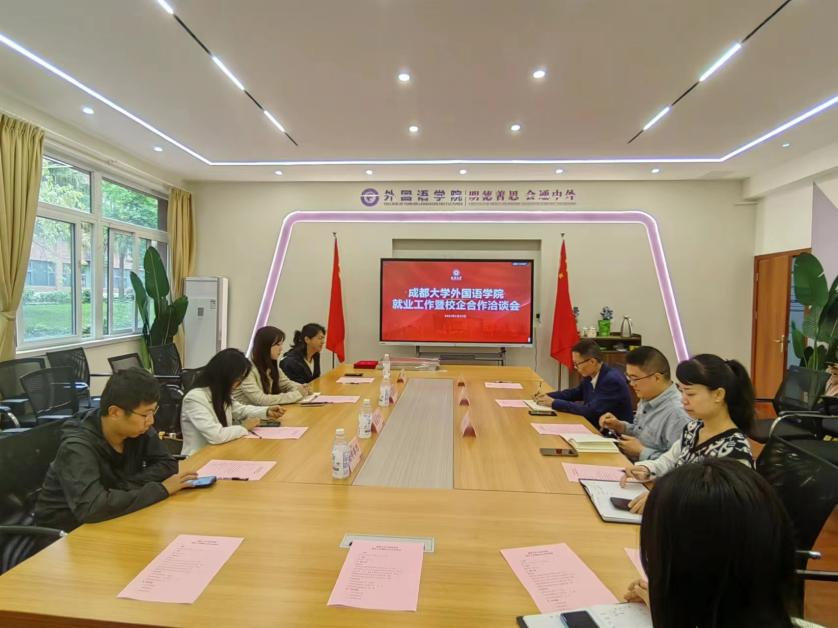成都高途云集教育科技有限公司、成都市新东方文化艺术培训学校有限公司、柒星誉鸣(北京)建筑工程有限公司、成都勤学善思教育科技有限公司4家参会企业相继介绍了企业目前的发展情况、人才需求、意向合作方向,均表示公司目前对外语人才需求较大,期待进一步深度合作。