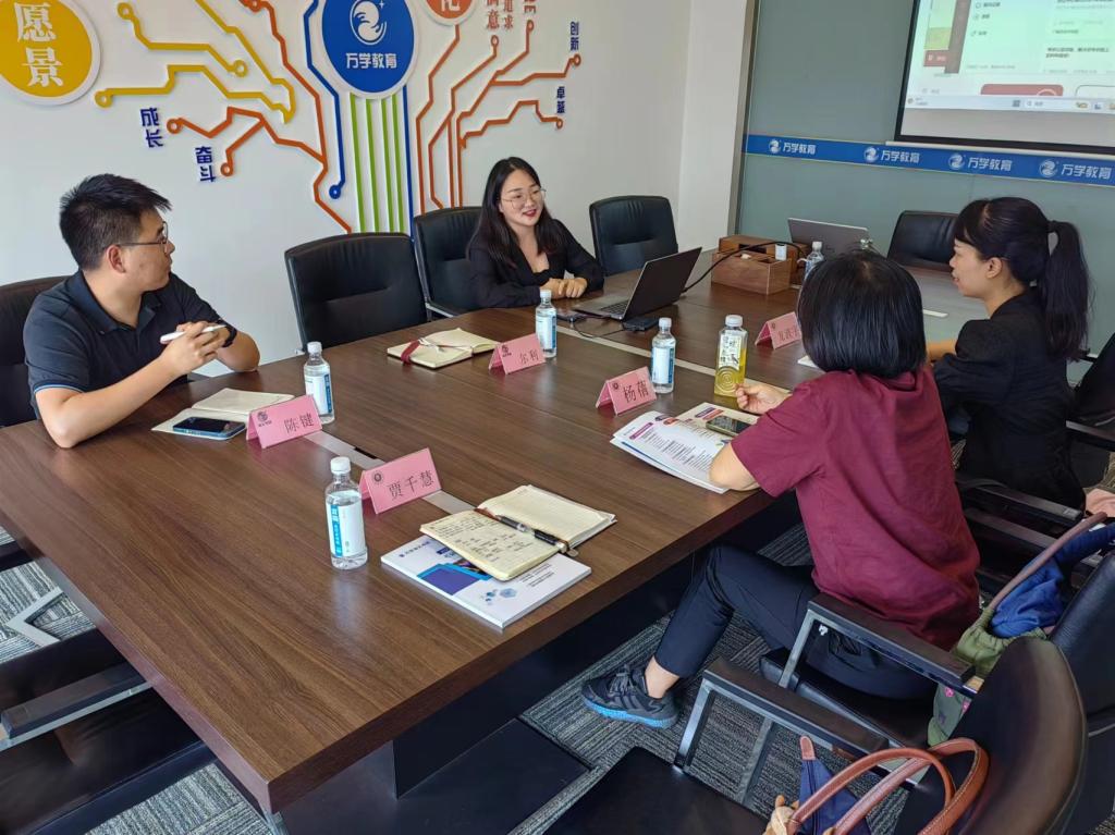 2024年5月16日下午,外国语九游官方网站英语系主任杨蓓、学工办主任龙波宇和就业辅导员贾千慧走访万学海文,围绕校企合作开展交流座谈。