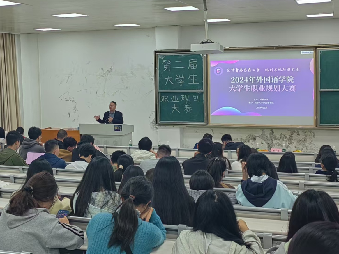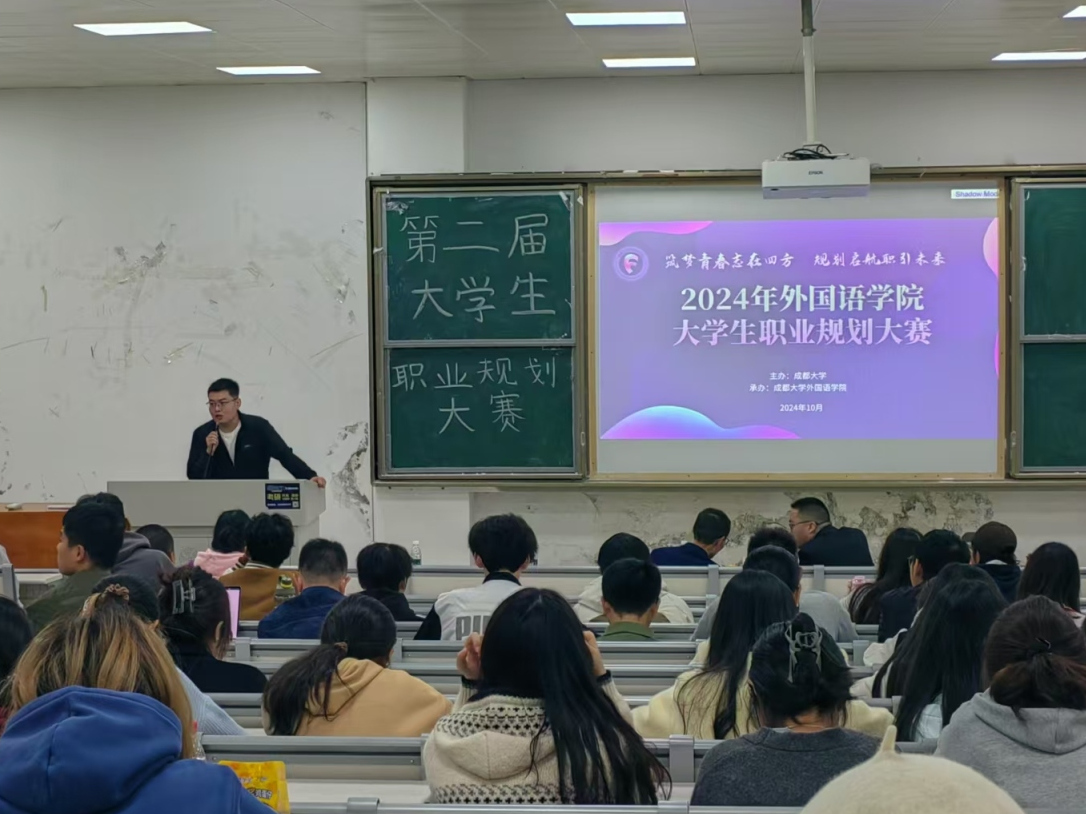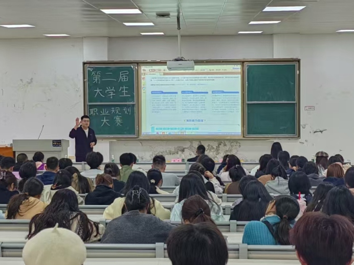 为贯彻落实党中央、国务院决策部署,落实《国务院关于印发“十四五”就业促进规划的通知》精神,加强高校生涯教育和就业指导,增强大学生职业规划意识,指导其及早做好就业准备,以择业新观念打开就业新天地,促进高质量充分就业,根据《教育部关于举办第二届全国大学生职业规划大赛的通知》、成都大学《关于举办成都大学2024年大学生职业规划大赛的通知》,10月29日下午,九游jiuyou(中国)在二教2221教室成功举办2024年大学生职业规划大赛。