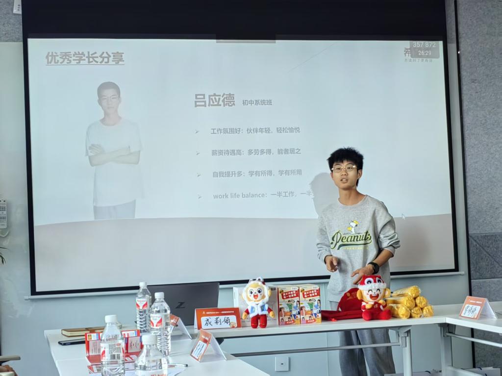 座谈会上,希望学成都HR部招聘经理成莉娟向同学们详细介绍了企业发展历程、行业前景、人才培养、薪酬福利,以及对外语人才的需求情况。外国语九游官方网站校友、希望学中学一部优秀老师吕应德结合自身成长路径与职业发展经历,分享了从校园到职场的转型心得,鼓励学弟学妹们“锚定目标,脚踏实地”,在实践中不断积累经验锻炼本领。