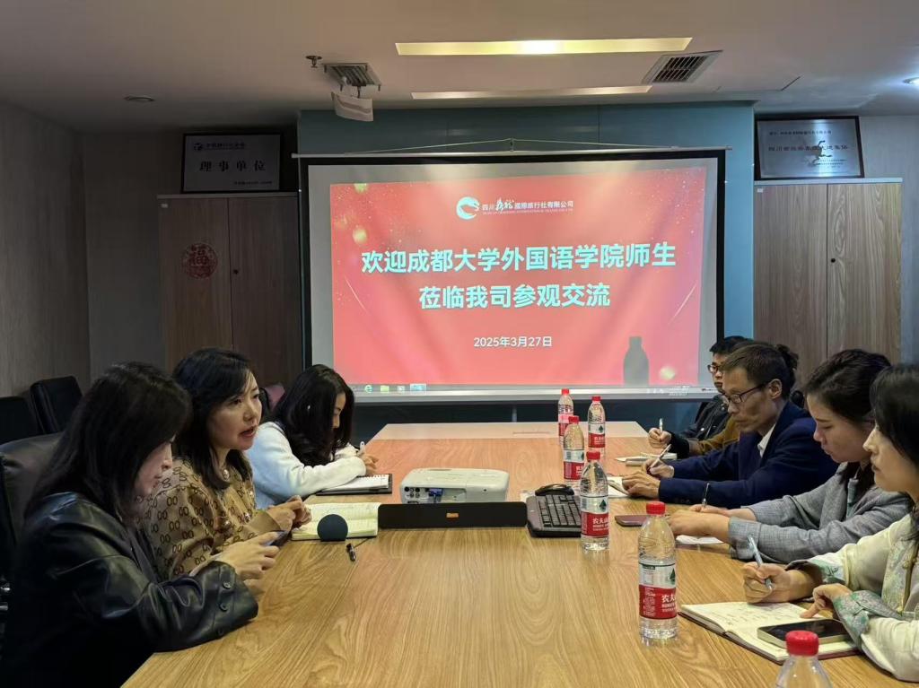2025年3月27日下午,外国语九游官方网站党委书记许庆荣带队走访四川鼎龙国际旅行社有限公司,围绕人才需求开展调研座谈,旅游与文化产业九游官方网站党委副书记周红、学工办主任燕爽共同走访,外国语九游官方网站泰语系主任唐敏莉线上参会。